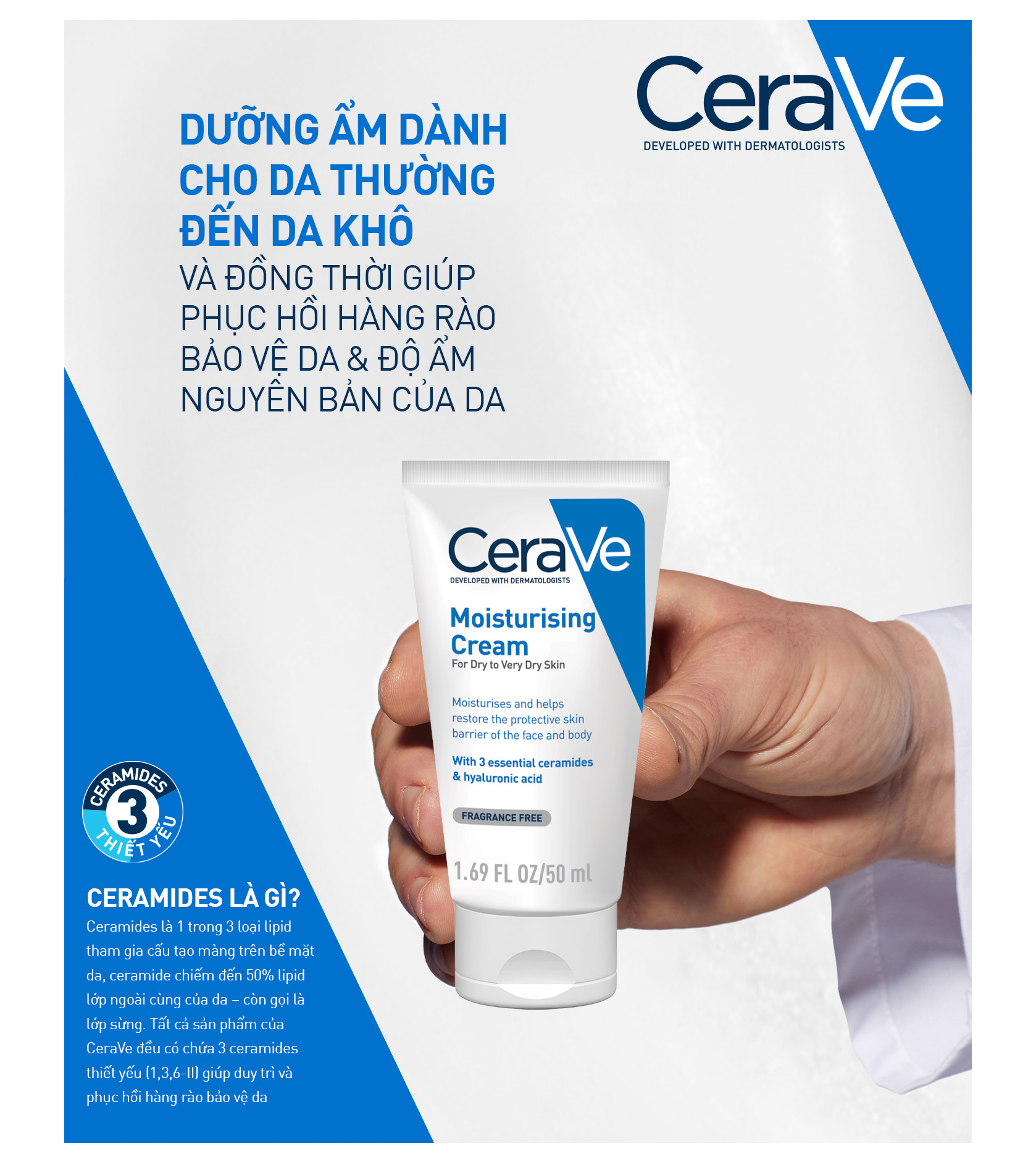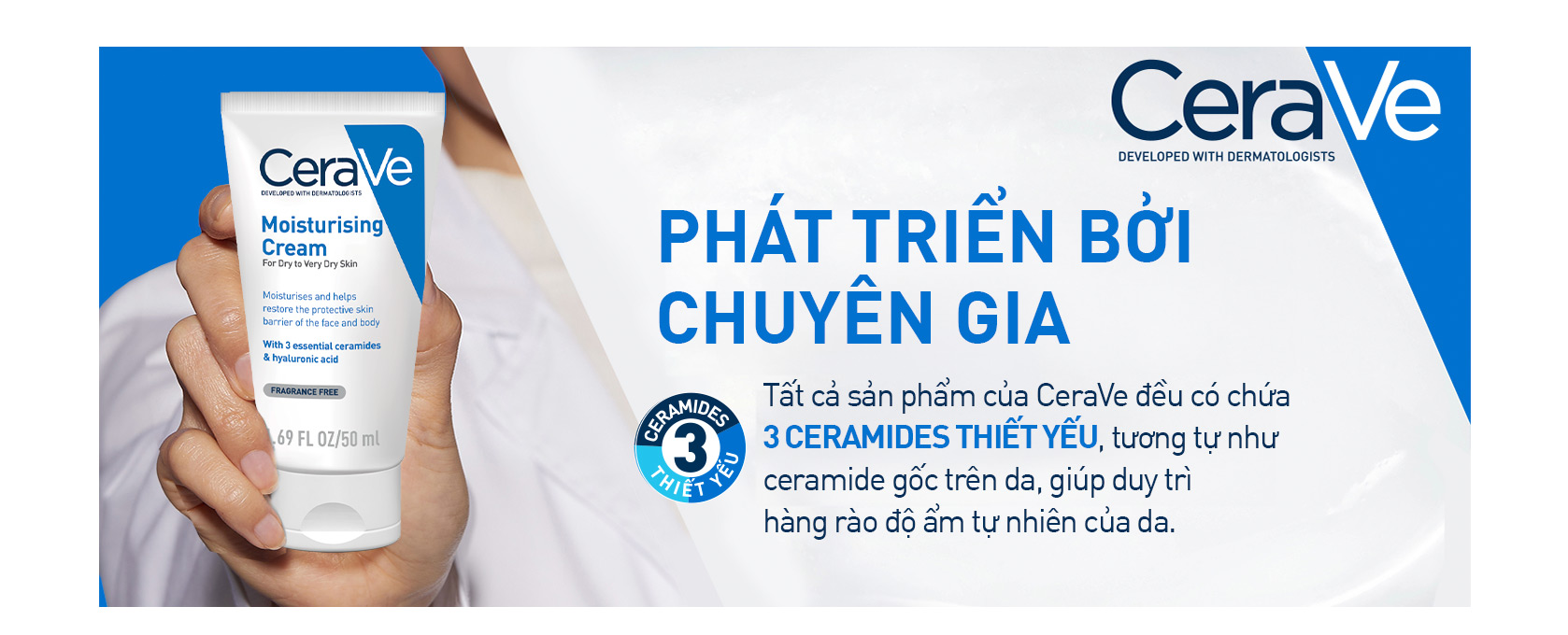 CeraVe là nhãn hiệu dưỡng ẩm #1 tại Mỹ được các chuyên gia chăm sóc da khuyên dùng. Vào năm 2005, một hội đồng các bác sĩ, chuyên gia chăm sóc da đã phát triển một công nghệ mới có chứa Ceramides 1, 3 và 6-II (giống hệt với cấu trúc Ceramides được chứng minh thiếu hụt trong một số bệnh về da), axit béo và các chất béo khác được tăng cường với hệ thống phân phối đột phá được gọi là MultiVesicular Emulsion Technology - MVE. Công thức của 3 loại CERAmides thiết yếu và công nghệ mVE là sự ra đời của CeraVe. CeraVe là một trong số ít những nhãn hàng phát triển sản phẩm bởi các bác sĩ nhằm cung cấp các giải pháp trị liệu cho làn da. Với nỗ lực không ngừng nghỉ của mình, nhãn hàng vẫn sẽ tiếp tục đồng hành và phát triển cùng các chuyên gia chăm sóc da để góp phần biến đổi diện mạo ngành chăm sóc da trong nhiều năm tới.